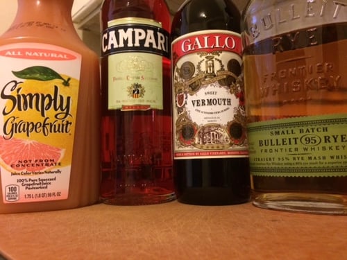 I opted for a bourbon cocktail instead! I’ve recently been on a grapefruit kick, so I looked up some recipes and chose the Boulevardier.