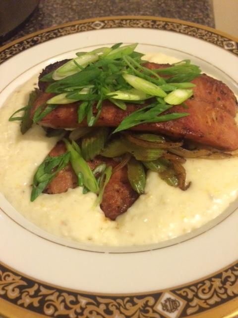 I simply heated the pan, split the sausage in half and cooked the andouille on medium heat until it was slightly dark and caramelized. If I hadn’t drank my whole pot of coffee that morning, I would have made a red eye gravy to go with this comforting dinner.