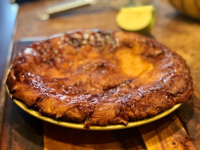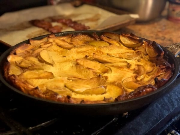 8. Carefully invert the pancake onto a platter and cut into wedges!