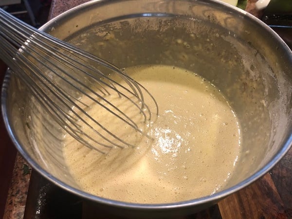 2. In a large mixing bowl, whisk together flour, milk, eggs, vanilla bean paste, nutmeg and salt. I like to use a large bowl so that I have plenty of room to whisk and get some air into the batter. You can also opt to put this batter in a blender if you prefer! The batter will be much thinner than typical American pancake batter.