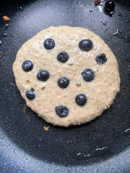 - Once you spoon out the batter, top with the blueberries – if you blend the blueberries with the batter, your batter will be purple, which could be fun if you have small kids!