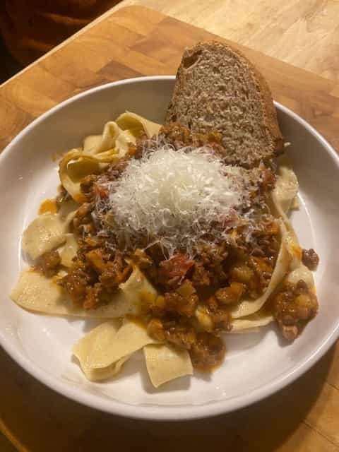 8. Serve with Pasta: For my sauce, I used fresh homemade pappardelle, but any flat, broad noodle will work. If you’re interested in making pasta from scratch, check out some of our other guides like this one.
