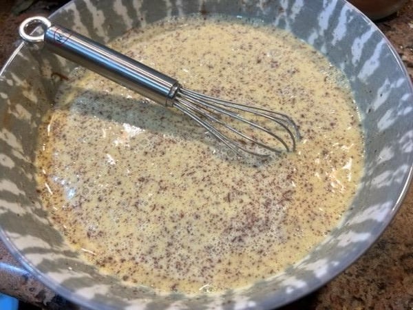 2. In a shallow bowl, whisk together eggs, heavy cream, milk, cinnamon, vanilla bean paste, salt, and sugar (you could even add a splash of bourbon or Grand Marnier if the mood moves you).