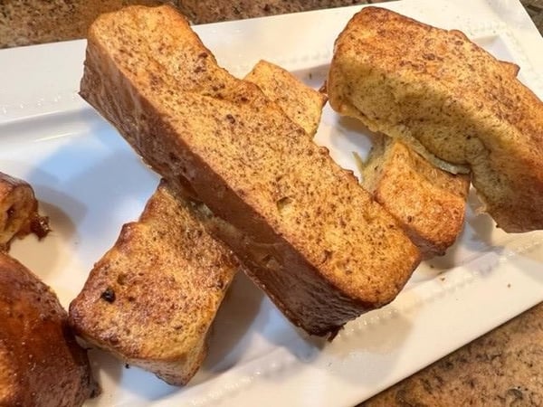 7. When the French toast sticks are done, they should be puffy and golden brown.