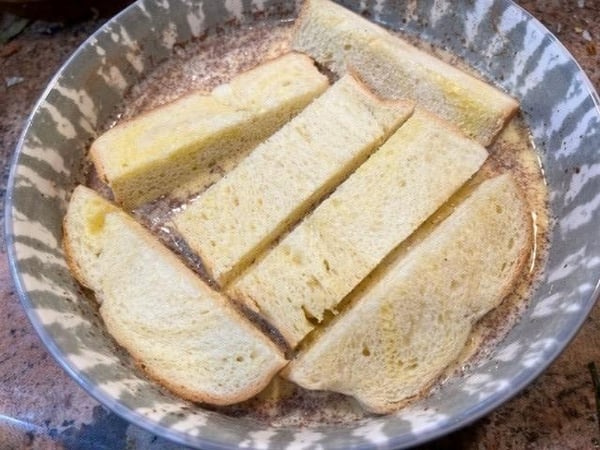 3. Soak brioche sticks in batter for 2-3 minutes per side.