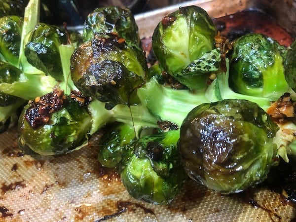 Maple Chili Garlic Glazed Brussels Sprouts on the Stalk