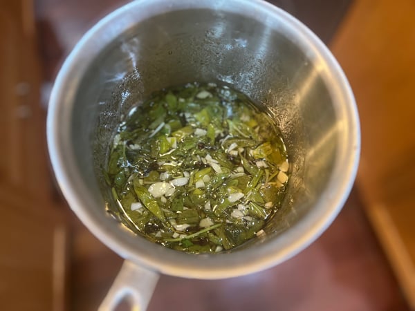 - Turn off the heat and let cool for 10 minutes before adding the mint and basil.