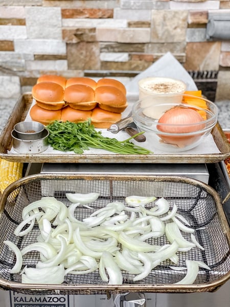 - Top with a dollop of your favorite BBQ sauce followed by the onion.