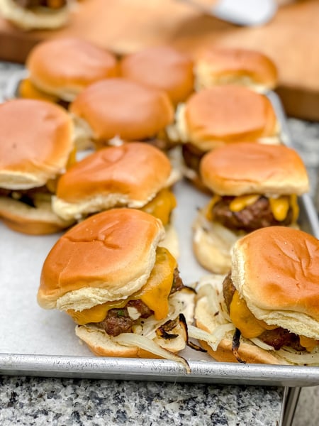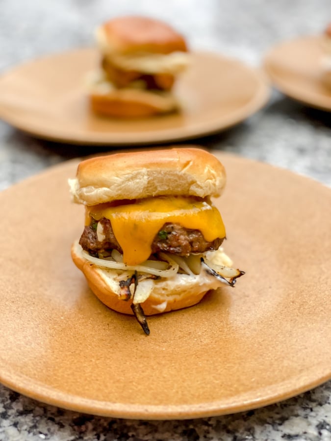 - Gently set the top bun on the burgers and enjoy!