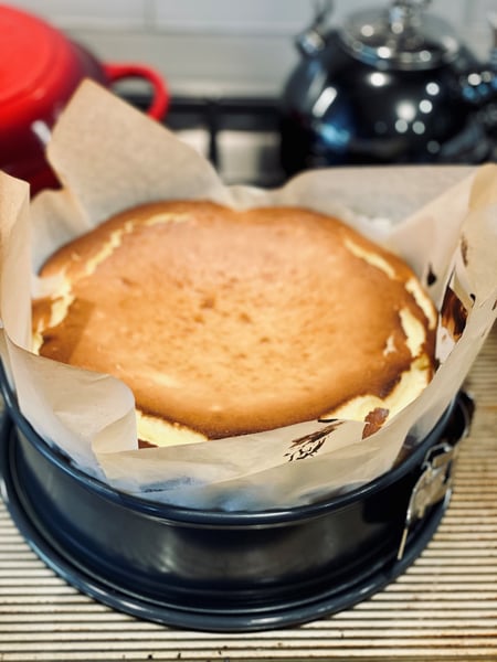 It is such an unusual recipe because of the way it is baked that it initially made me nervous. But at the same time, I was quite fascinated with the recipe. It wasn’t until I finally attempted and baked a similar recipe that also challenged me that I decided to give Burnt Basque Cheesecake a try. The recipe that helped me decide was a recipe that I discovered in Milk Street Magazine for ‘Pao de Ló,’ a Portuguese Sponge Cake. With both recipes parchment paper plays a key role, both are baked in a springform pan, and both use eggs that play a big part in the baking process and the outcome of the texture of each cake.