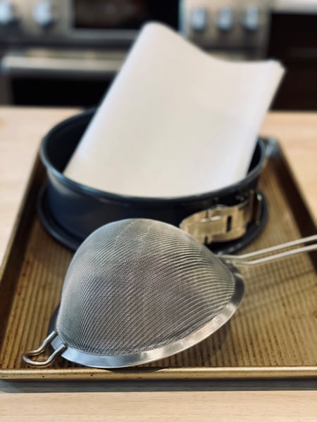 - Don’t be concerned about getting the sheets of parchment to fit perfectly in the springform pan. One of the most distinct features of the cake is the wrinkles and creases that will form from the crumpled parchment paper.