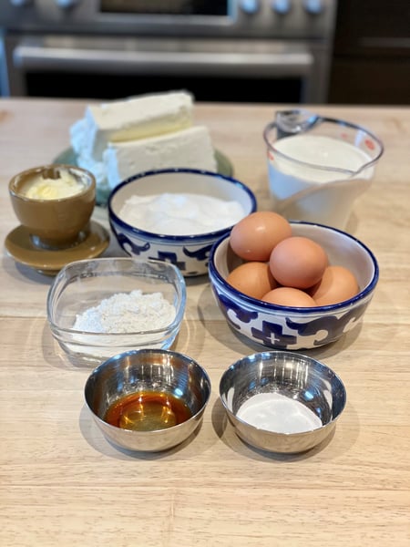 Here's a bit of backstory on the Burnt Basque Cheesecake. The cheesecake was invented in San Sebastián, Spain by the Chef/Owner of La Viña restaurant. And for over three decades now, this cheesecake has had chefs and foodies alike from London, Tokyo, Istanbul, Melbourne, Mumbai, New York, Paris, Hong Kong, Los Angeles, and hundreds of other cities completely obsessed and enchanted. Their obsession has led them on pilgrimages to Spain to discover the secret of this under-baked cheesecake, with a rough, wrinkly, caramelized almost burnt-like exterior. The website Tastecooking.com says about the Burnt Basque Cheesecake, “It breaks all the rules of the porcelain-white, even textured cheesecake (Americans) know,” says pastry chef Bea Vo, who’s based in London and has had La Viña’s cheesecake at least a dozen times. “It’s proudly tanned and even burnt in spots, with a rough, pillowy edge and oozy center.” That is the perfect way to describe this cake.