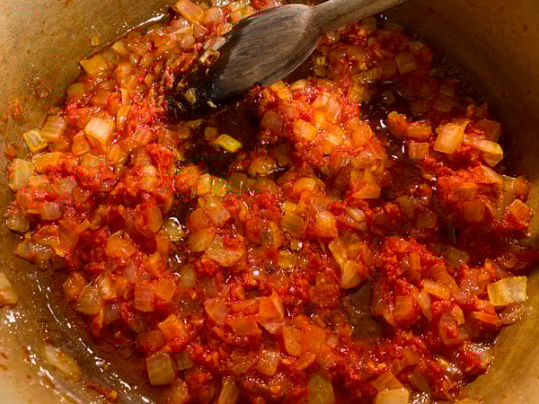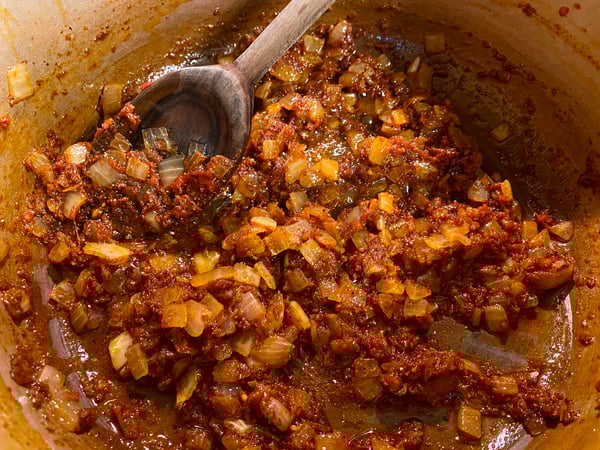 You then add garlic, ginger and tomato paste, and gently cook until aromatic. This is when your kitchen starts to smell really amazing, by the way.