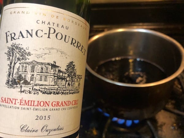 - 2. Bring red wine to a boil over medium high heat and let it reduce to a syrup (1 cup in volume), about 30 minutes. Set aside to cool.