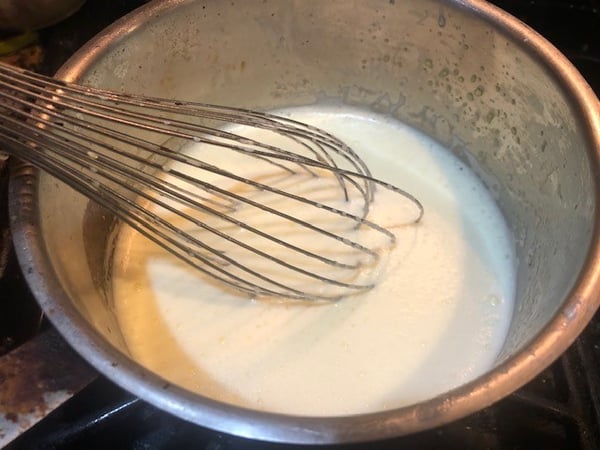 6. Add 2 more Tablespoons of the warm cream/vanilla mixture and whisk vigorously.