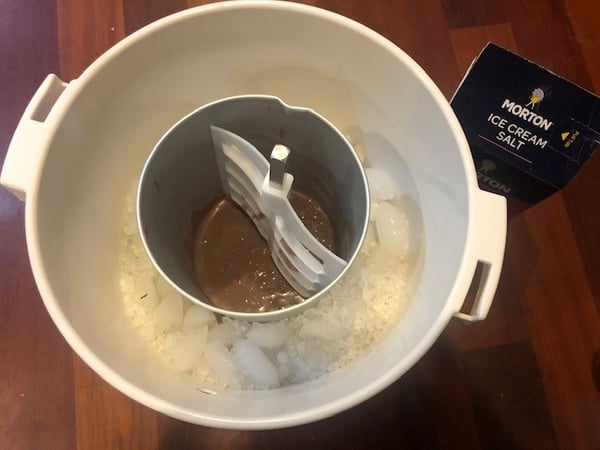 When I decided to try my hand at making ice cream, I wrongly assumed that I’d just need some cream, eggs, sugar, vanilla, and I’d be in business. Then I realized that I needed rock salt. I happened to be on the phone with my mom during this realization. She promptly suggested that I go to the local home improvement store – surely they had rock salt. Well, apparently in the 60s food safe salt wasn’t a big concern (ha!). I opted to hunt down some Morton’s Ice Cream Salt – not as easy to find as you’d think (Walmart was the only place in Chicago that I could find it).
