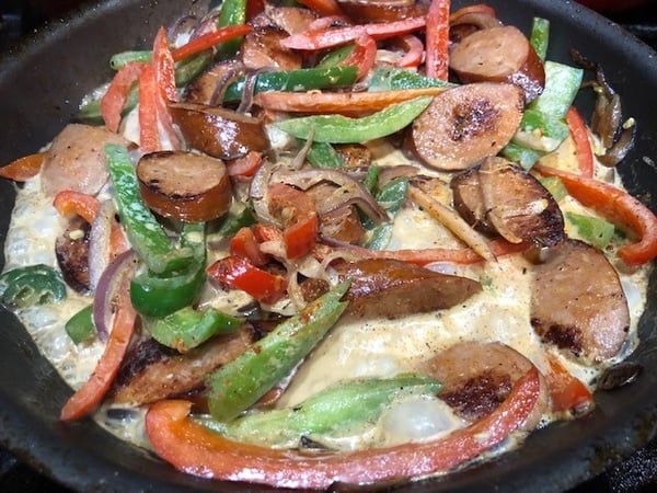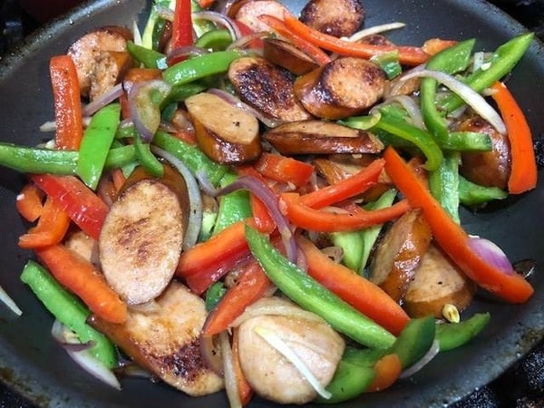 - Add the bell peppers to the pan and sauté another 2-3 minutes.