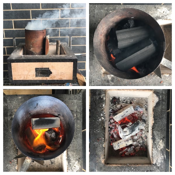 There are lots of different styles of charcoal grill out there, but they can all be used in more or less the same way. There is your classic kettle grill, the smoker, though designed for smoking meats low and slow BBQ style, can also be used as a straight forward charcoal or wood burning grill. Then there are the Japanese styles of charcoal grill, the two most common of which are the Konro, and the Kamado. The Kamado is reminiscent of a kettle grill, but with every component raised to its Platonic Ideal. These can be used as grills, smokers, wood fired ovens, and more. The most famous Kamado style grill in this country is probably the Big Green Egg, which we use for our grilling classes here at The Chopping Block. The Konro is a smaller, typically rectangular charcoal grill with a lightweight mesh grate. They are made from an impressively insulating material called diatomaceous earth, and were originally used to make Yakitori. I use a medium-wide size Konro grill at home, so the techniques I discuss will be based around that, but will work with any of the above mentioned styles of charcoal grill (though if you’re using a kettle grill you’ll probably want to test to make sure your grill grate can support the weight of two cinder blocks (spoiler alert: some of these techniques involve two cinder blocks).