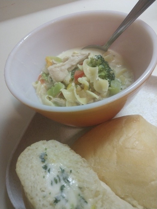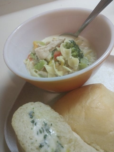 The last ingredients to add was the chicken and the cream, once I that was done, I let the soup simmer until I was ready to eat. Truthfully, I was ready to eat when I added the vegetables, but I had to wait because I’m making chicken soup, not vegetable soup.