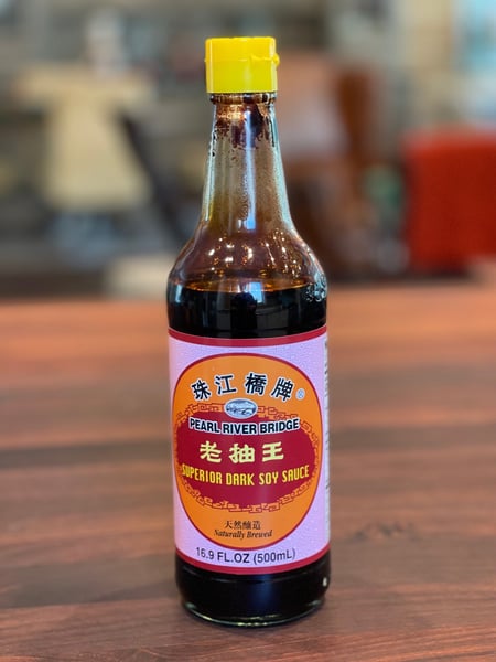 Dark soy: Believe it or not, this is a less salty version of soy sauce. It is used side by side with light soy sauce as they offer two very different flavors. Dark soy has molasses or other sweeteners so it adds a beautiful light sweetness, light saltiness, big umami flavor and a gorgeous caramel color to braised or marinated dishes.