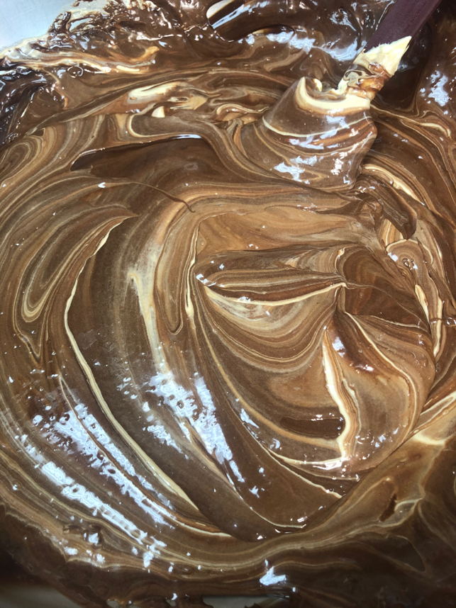 - Use a spatula to fold the pate a bombe into the ganache in three additions.