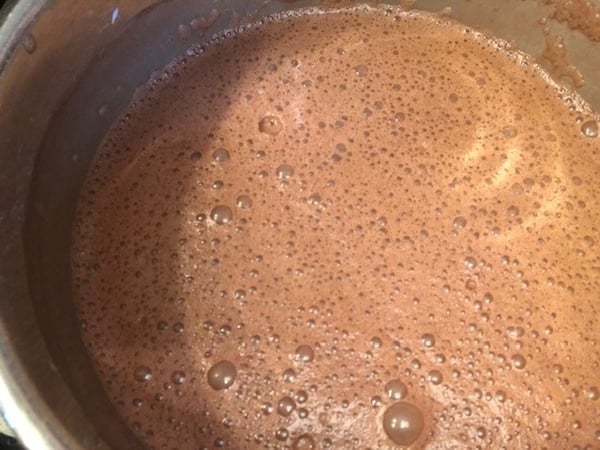 - Turn on heat to medium, and whisk constantly until mixture begins to bubble. Boil for 1 minute and then remove from heat. Mixture will be thick and will continue to thicken as it cools.
