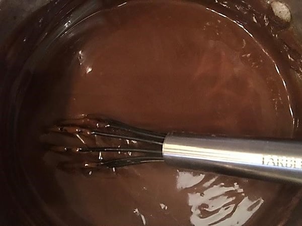 4. Immediately add in butter, semi-sweet chocolate chips, and vanilla. Stir until completely incorporated and smooth.