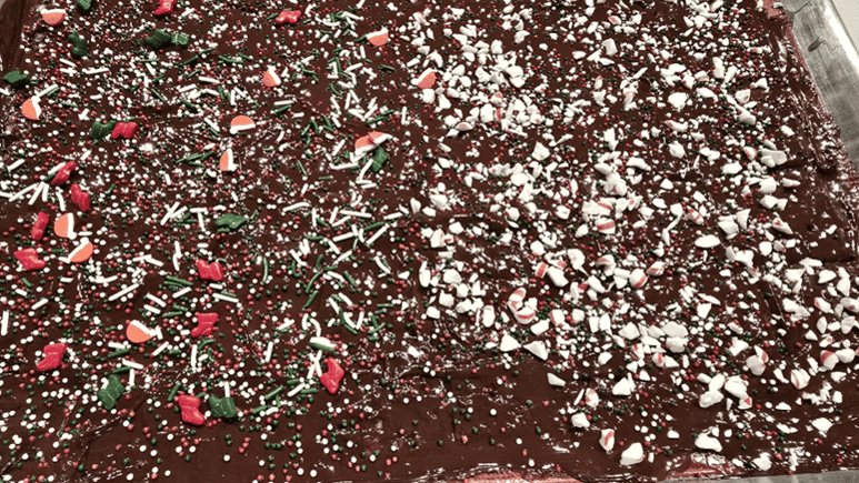 - Place the sprinkles on top of the chocolate. Let the toffee sit until completely cool, either at room temperature or you can refrigerate.