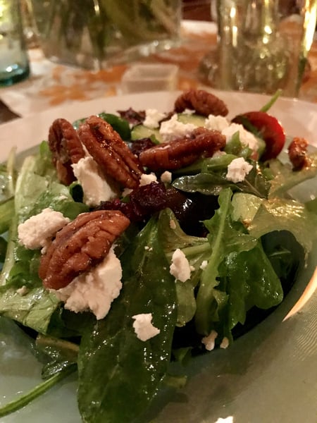 We then enjoyed a salad of mixed greens, candied pecans and goat cheese crumbles with pear and ginger vinaigrette dressing.