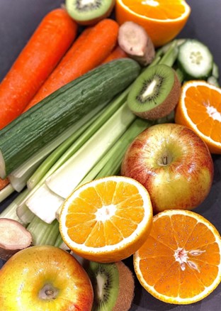 - Apple, celery, cucumber, kiwi, lemon, ginger