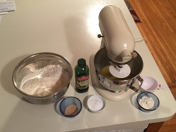 - Add oil, most of the flour and salt, and mix until incorporated. I recommend using a stand mixer with the dough hook attachment to save time and effort. If you don’t have one available, use your hands.