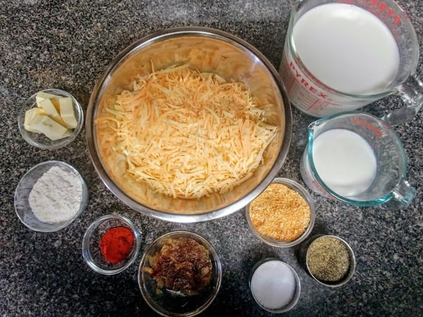 - 7 oz smoked Gouda, grated