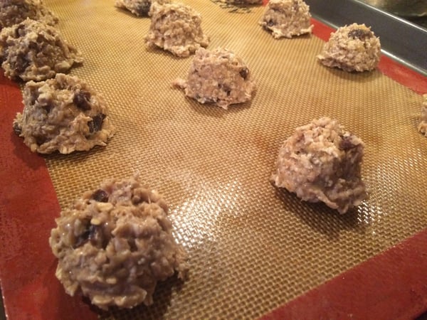 3. Scoop out tablespoon-sized spoonfuls onto a parchment or a Silpat-lined sheet tray. Space the scoops 1 ½ inches apart.