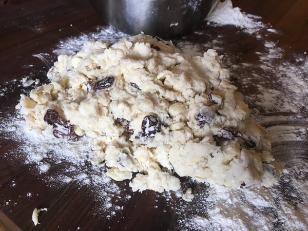 - Add the buttermilk and mix until just combined. Don't overmix! It should be a bit sticky and there may be a few spots of unincorporated flour. This is fine.