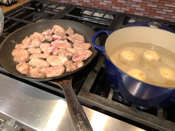Because Christkindlmarket couldn't celebrate with a physical market last year, The Chopping Block partnered with them to bring you German cooking classes virtually. We had a total of six classes, and one of them features my favorite recipe for this time of year. This recipe is a different kind of pork stew because it's quick, easy and delicious. This is also one of the recipes I cooked when I was right out of culinary school in Northern Bavaria in the beautiful town of Pegnitz.