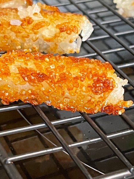 - Have a cooling rack ready for your completed crispy rice.