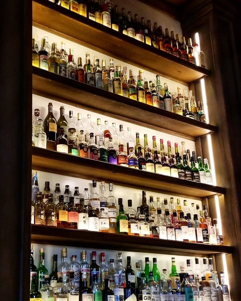 Antonia Lofaso’s partners in DAMA and Scopa, Pablo Moix and Steve Livigni, have created a haven for rare booze acolytes behind a shadowy, unmarked side door of Scopa. Old Lightning lives behind the restaurant, and the only way to get there is by reservation which are limited; it’s about the size - and feel - of a large living room. We wrapped up our dinner and mosied over to the host stand to check in for Old Lightning. She promptly directed us outside to wait under a lamp ensconced in the brick facade. Such intrigue. Within a few minutes, someone walked up to us and greeted us with oversized playing cards to trade in for our phones. Such plot.