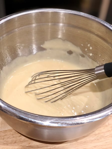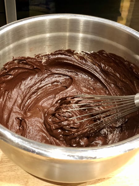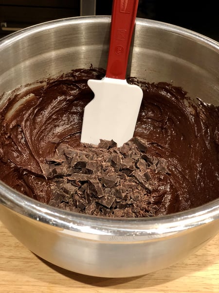 3. Add the flour, baking powder, and baking soda and whisk until well combined and smooth. If using chopped chocolate or chocolate chips, fold in until combined.