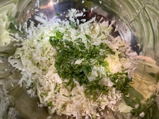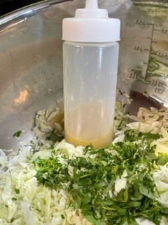 - In a large bowl, toss cabbage with part of the prepared pickled tea leaves. (I used about a little less than 1/4 of a cup.)