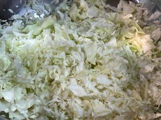 - Shred a head of green cabbage (or you can use your favorite hearty lettuce like romaine or iceberg).
