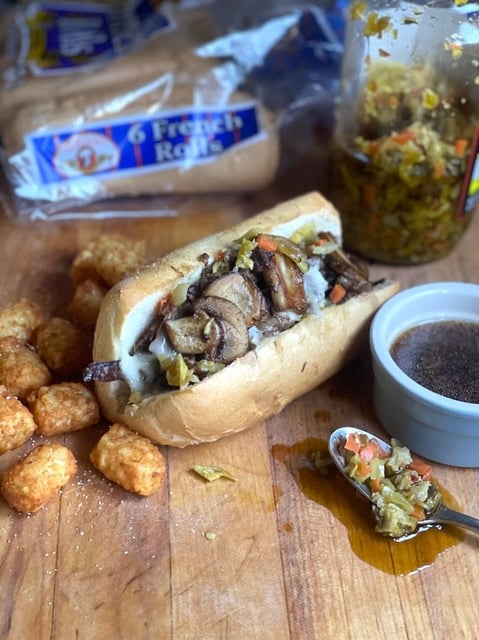 This au jus is money! You can garnish your sandwiches with more giardiniera, sautéed mushrooms or onions if desired.