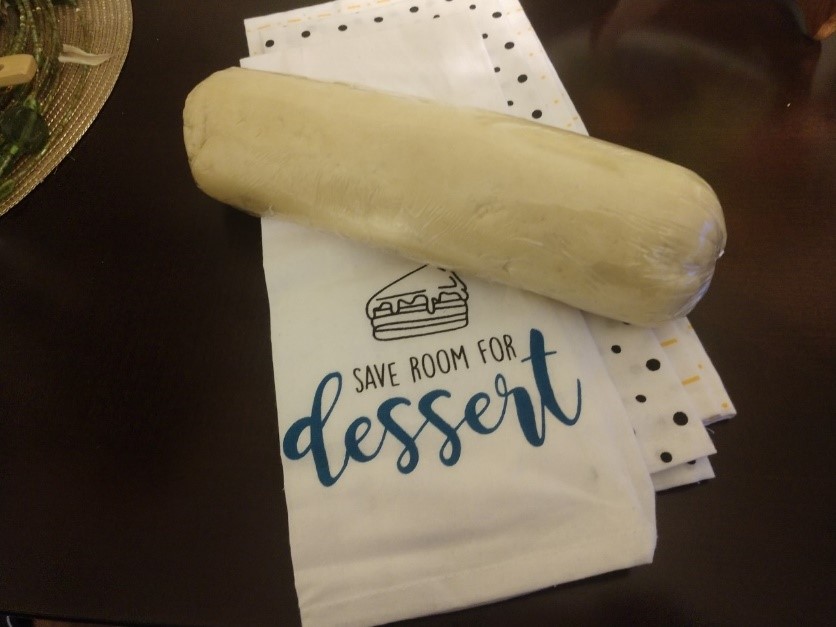 For my final modification, I prefer a rolled cookie verses a drop cookie, so I wrap my cookie dough in plastic wrap and create a log and freeze for about 10 minutes or just until the dough is firm. Making a log keeps the cookies uniform, and I can control the thickness of the cookie better than you can using the drop method.