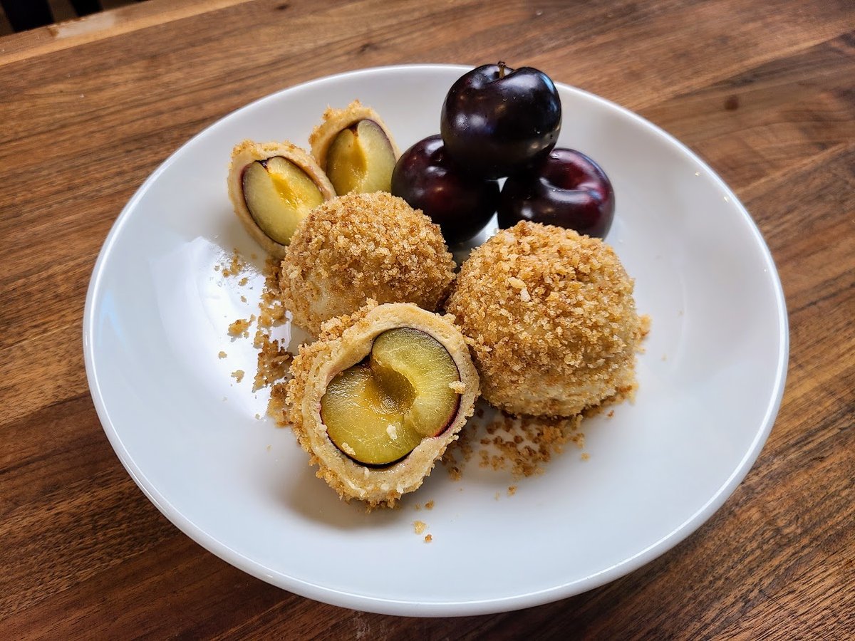 This potato dough is very much just a sweetened version of another dumpling popular in Europe that does not contain a filling: the notorious gnocchi. I am unfortunately not going to go into detail about this other famous dumpling (see picture for reference) but if you ever wanted to learn how to make them, we offer a different gnocchi class every month virtually. The next gnocchi class is on October 18th. I had extra dough after wrapping my plums so I boiled off some gnocchi and I think I’m now hooked on sweet gnocchi over savory!