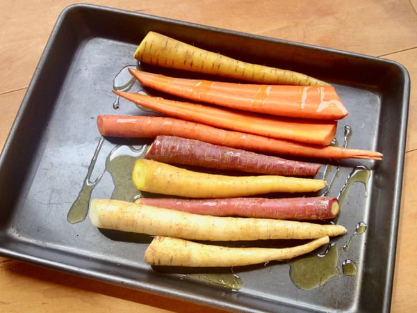 - Note that while all types of carrots are fine for this recipe, the colors in multi-hued carrots will fade and bleed when you boil them together, so if that’s what you have, roasting is the best method to retain those bright colors.