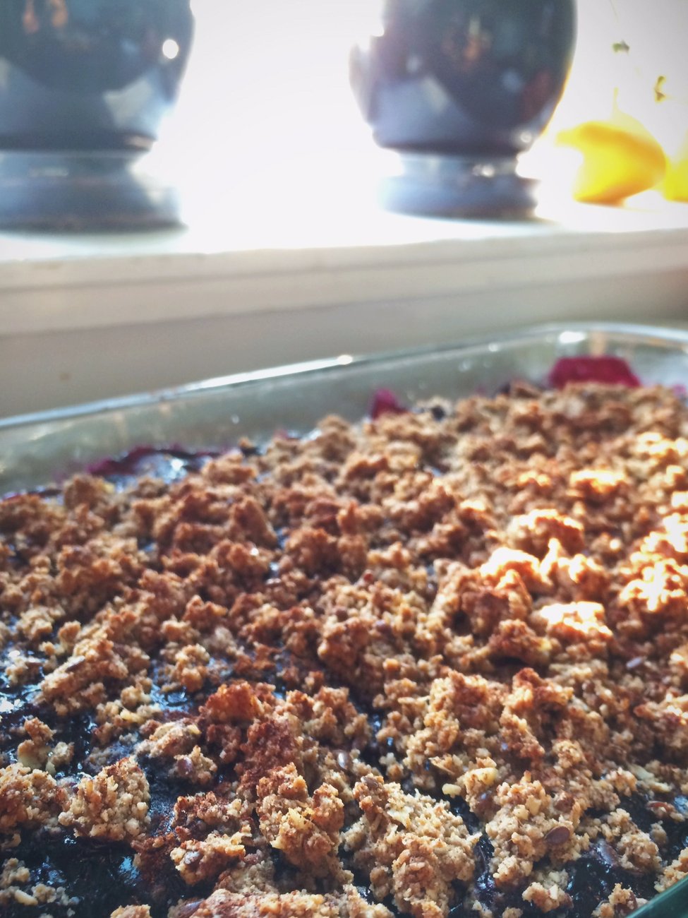 8 tablespoons cold unsalted butter, cut into 1⁄4-inch cubes, plus more for greasing the pan *it is very important your butter is cold as possible out of the fridge, this helps with the crumble texture of the topping