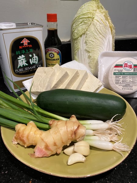 - 4 leaves Napa cabbage, white stem removed and chopped