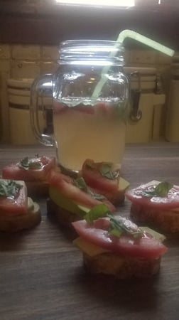 On those busy, hot Mondays I have a go-to combo that's sure to please: infused lemonade and bruschetta. Both are super-quick to prepare, involve very little stove or oven use, and can be customized to your taste or occasion.