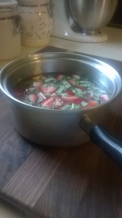 This is super simple and can be made in 10 minutes! (If you have an infuser pitcher, it’s even easier) All you need to do is chiffonade the basil and quarter the strawberries – I always take the hulls off the strawberries, but it’s not essential if you’re crunched for time. Pour your lemonade into a large pitcher or saucepan. I use a saucepan simply because I don’t have a pitcher large enough for my infusing, there’s absolutely no heating of the lemonade. Add the strawberries and basil to lemonade, cover and put in the fridge for a few hours.