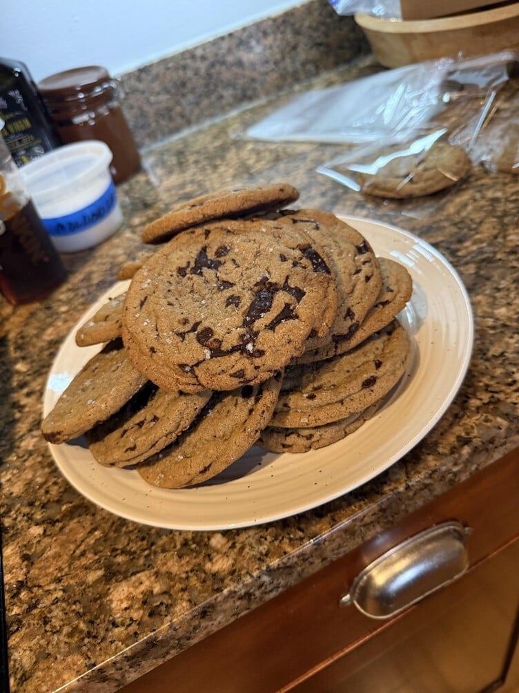As a cook, I’ve always strived to make great versions of simple foods. I absolutely love chocolate chip cookies and set out to perfect the snack. After months of very tasty R&D, I wound up with a chewy inside, crispy outside. sweet and salty cookie. To get there, I made a lot of chocolate chip cookies. Through this experience, I’ve found a few key recipe steps that take a so-so cookie to a decedent, memorable, bakery style dessert.