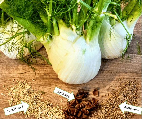 Fennel seeds come from a bulbing plant (Florence fennel which is the most recognized bulb) that is eaten as a vegetable. In fact, the entirety of the plant, seed, fronds, greens, and bulb are edible. Anise seed comes from a bush that is grown specifically for the seed; no other part of the plant is eaten. So, the difference between anise and fennel is actually pretty major and despite its similar name, anise is not related to star anise which is another spice from a completely different family of plants.